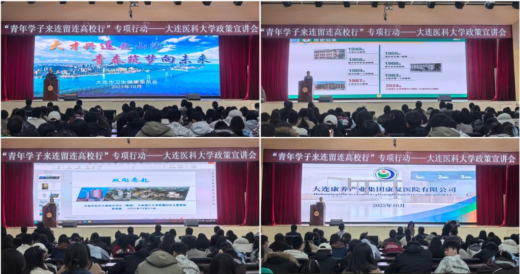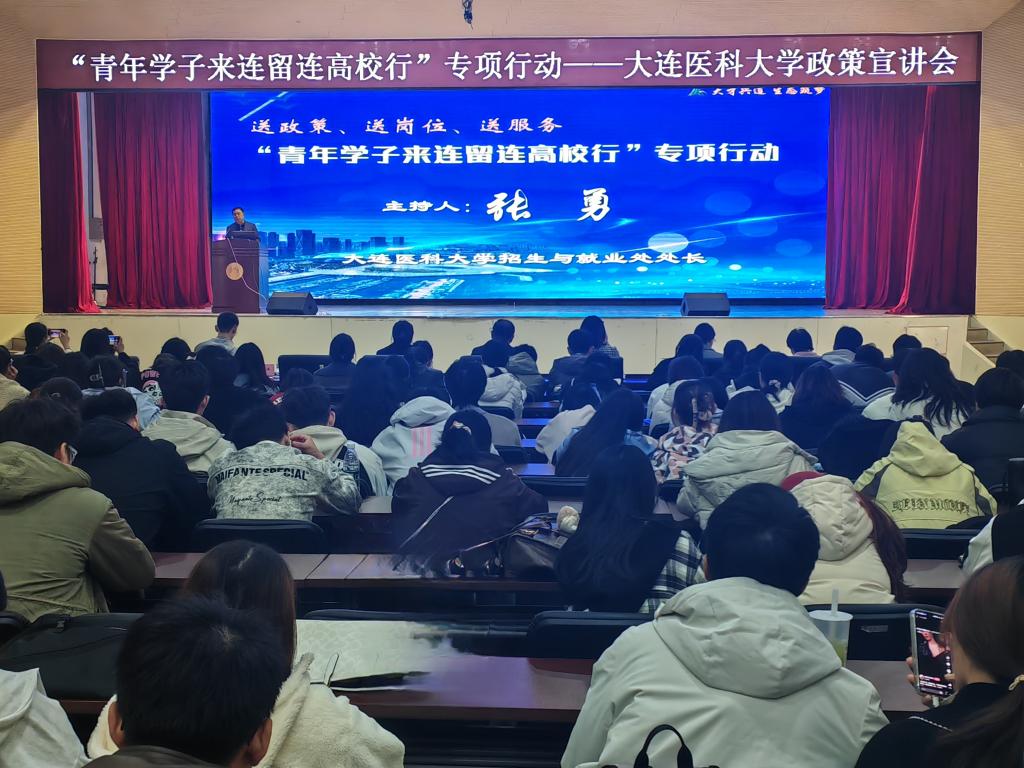 招聘会期间,中共大连市委人才工作领导小组办公室牵头来校召开了“青年学子留连来连高校行”专项行动——大连市人才政策宣讲会。大连市卫生健康委员会人事部门的负责同志向同学们详细介绍了大连市的未来前景、事业平台、人才政策和服务环境,以及大连市医疗卫生行业的发展情况等。大连理工大学附属中心医院(大连市中心医院)、大连市妇女儿童医疗中心(集团)、大连康养产业集团康复医院有限公司三家招聘单位相关工作人员依次推介本单位发展情况及政策待遇,为学生留辽在连就业提供全方位指导。